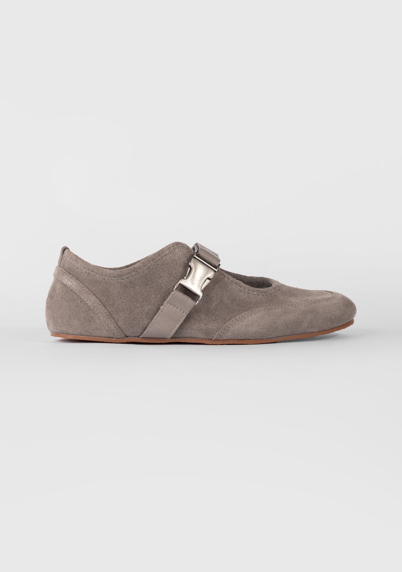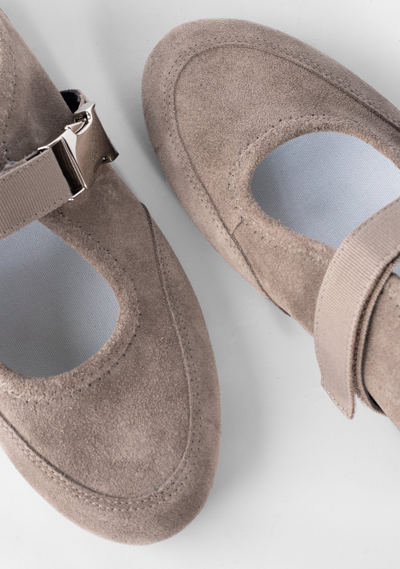 Ballerina de gamuza 100% cuero con correa tipo Mary-Jane y hebilla metálica de liberación rápida: minimalista por fuera, cómoda por dentro gracias a su plantilla acolchada y suela flexible antideslizante para uso diario. Silueta de punta redondeada que estiliza sin apretar, talón protegido con refuerzos suaves y construcción ligera que se adapta al pie desde el primer paso. Disponible en una paleta contemporánea que combina con todo: Topo (el de la foto), Rosa palo y Lima pastel; perfectas para jeans, vestidos o sastrería relajada. Hechas en serie limitada para mantener su exclusividad, con acabados a mano que realzan la textura aterciopelada de la gamuza. Si buscas flats de cuero para mujer cómodas, versátiles y chic, estas ballerinas REVIVER son tu par clave de temporada: livianas, elegantes y listas para acompañarte del día a la noche.