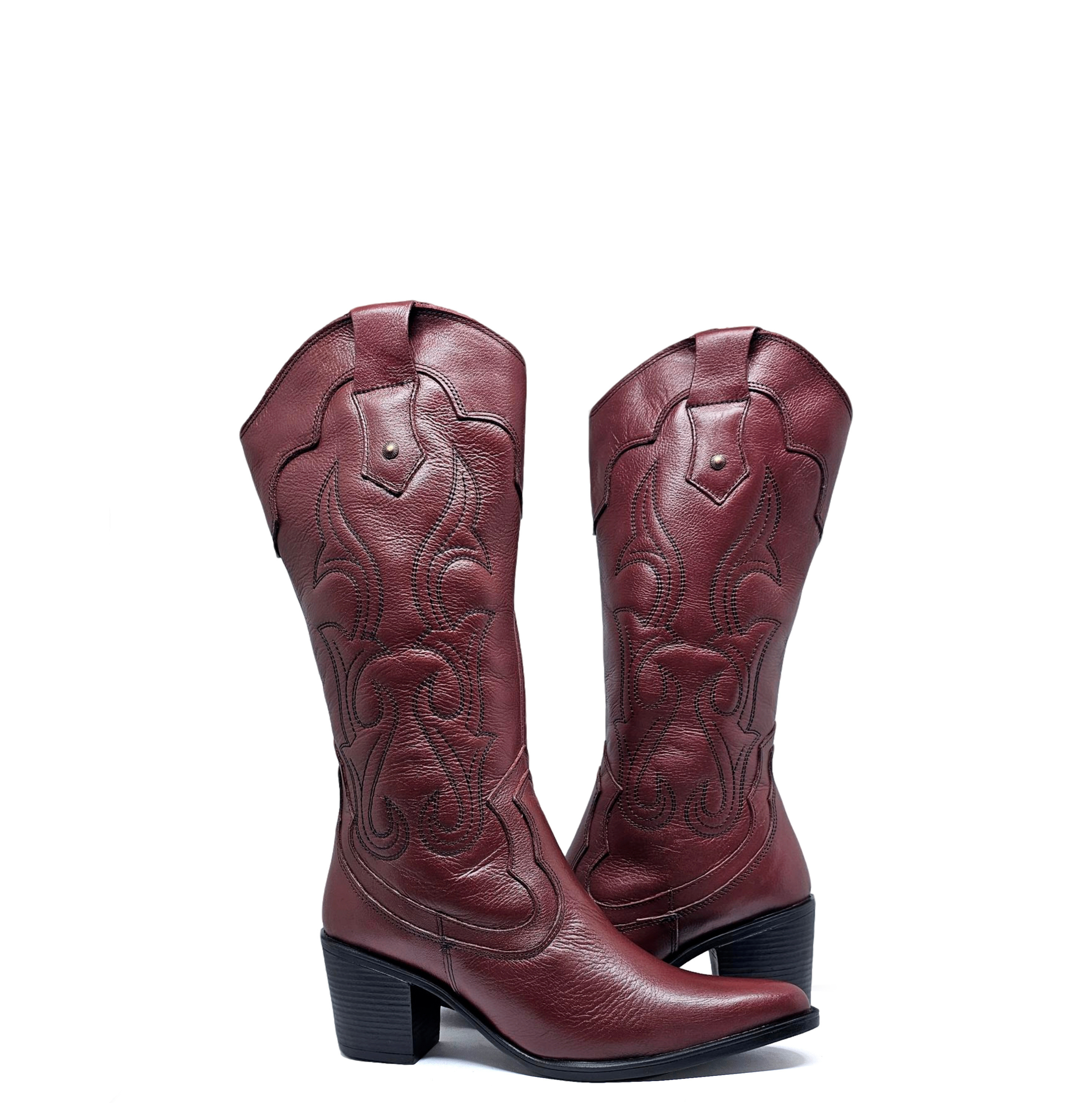 La Bota INDÓMITA Merlot es una declaración de estilo audaz y sofisticado. Fabricado con cuero de alta calidad en un profundo tono inspirado en nuestros vinos, este botín se distingue por su acabado opaco que le otorga un toque vintage único. El diseño de bordado intrincado en la parte superior de la caña le da un carácter distintivo y elegante, que resalta la belleza natural del cuero.