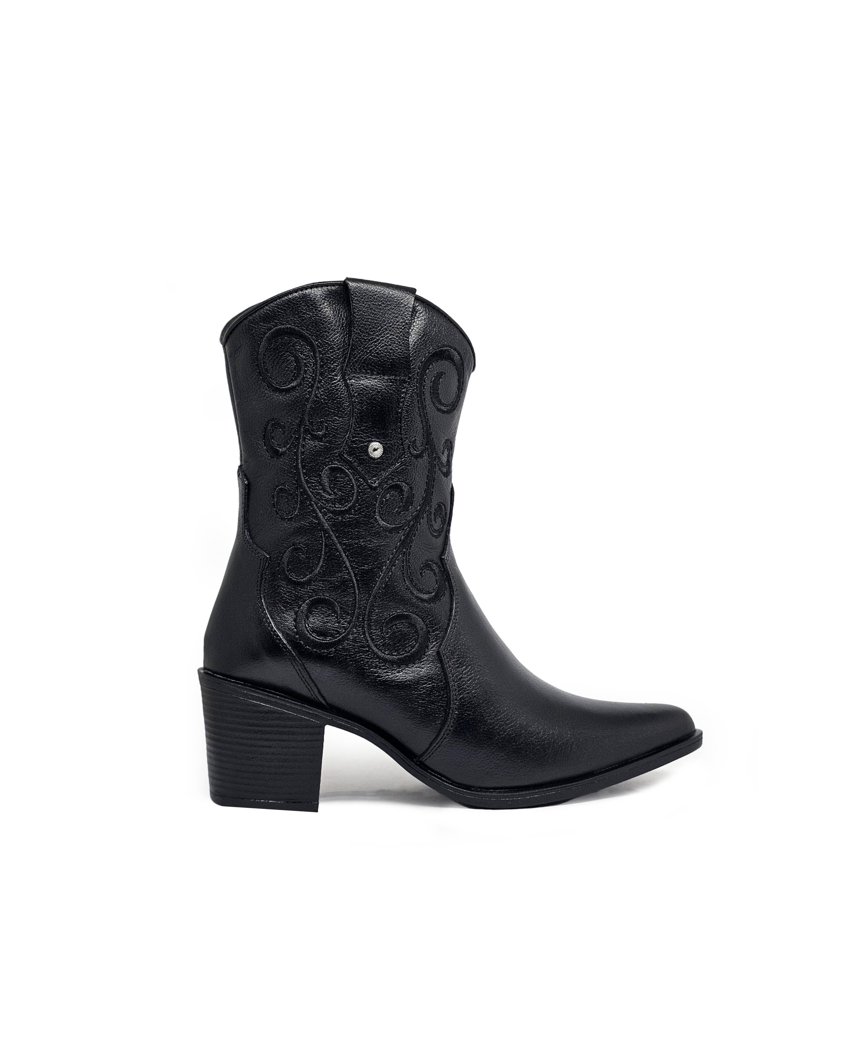El Botín SAGE Negro es la elección perfecta para quienes buscan un estilo elegante y moderno. Confeccionado en cuero negro de alta calidad, este botín presenta un acabado impecable que combina sofisticación y durabilidad. El bordado en espiral en el lateral agrega un toque único y refinado, haciendo de este botín una pieza destacada en cualquier atuendo.