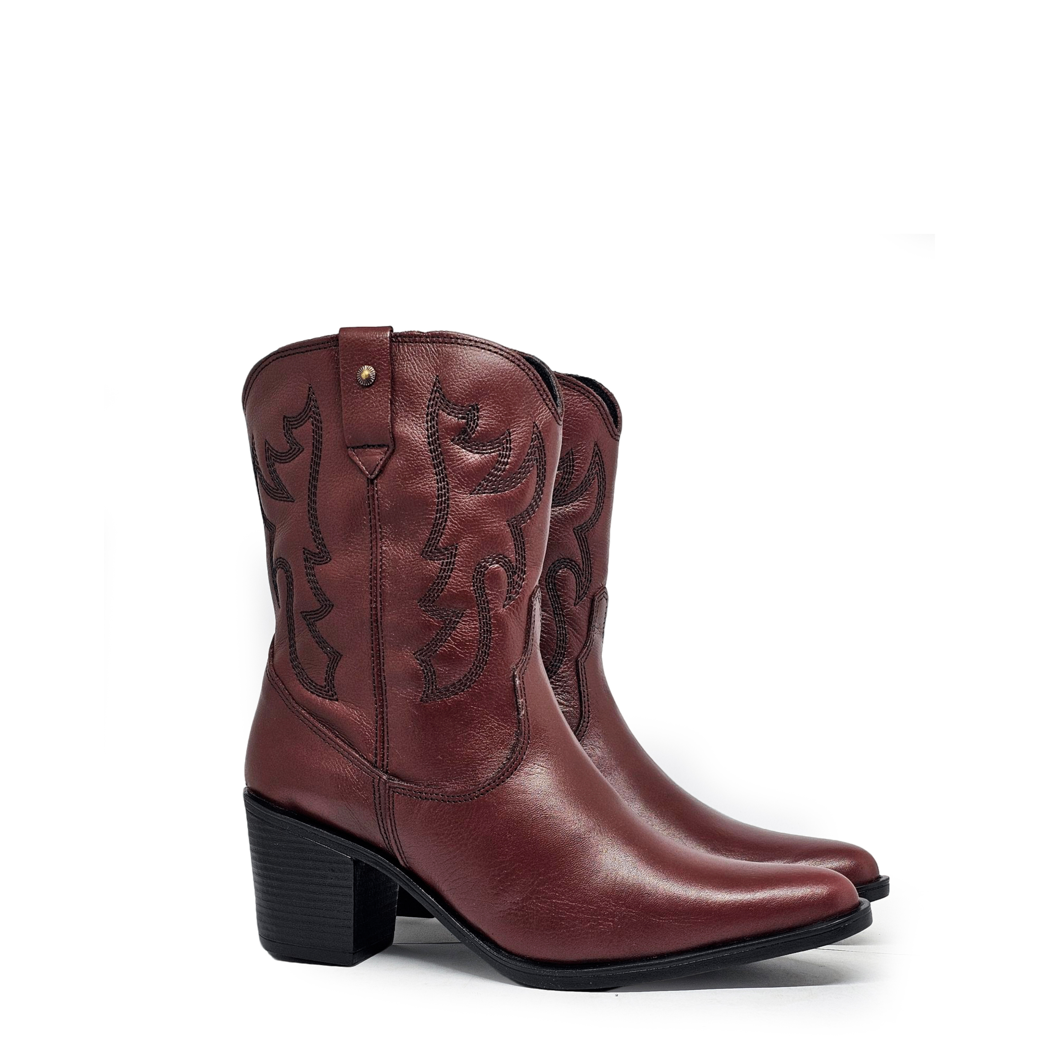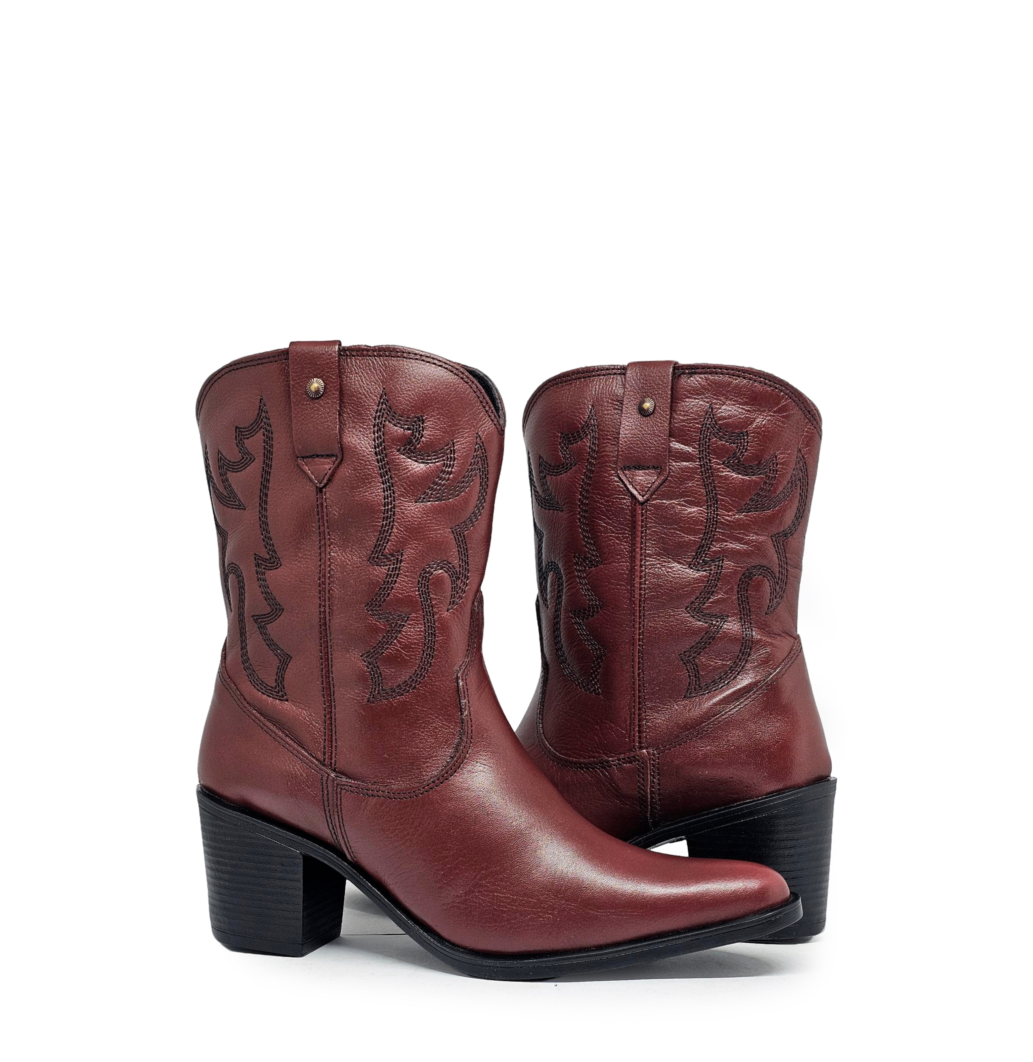 El Botín WESTERN Merlot es una pieza que destaca por su elegancia y carácter. Hecho de cuero de alta calidad en un tono Merlot profundo, este botín presenta un diseño clásico con un toque moderno. El bordado en tono oscuro sobre la caña agrega un contraste sutil, destacando la belleza del cuero sin sobrecargar el diseño.